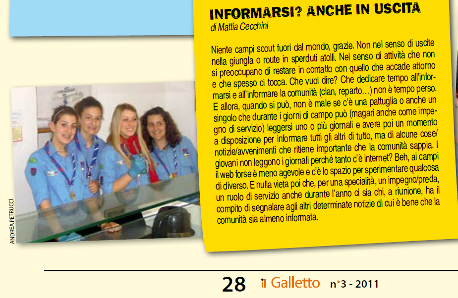 Per chi volesse è possibile scaricare la rivista in formato PDF dal seguente link: http://www.emiro.agesci.it/ilgalletto/2011/3.pdf