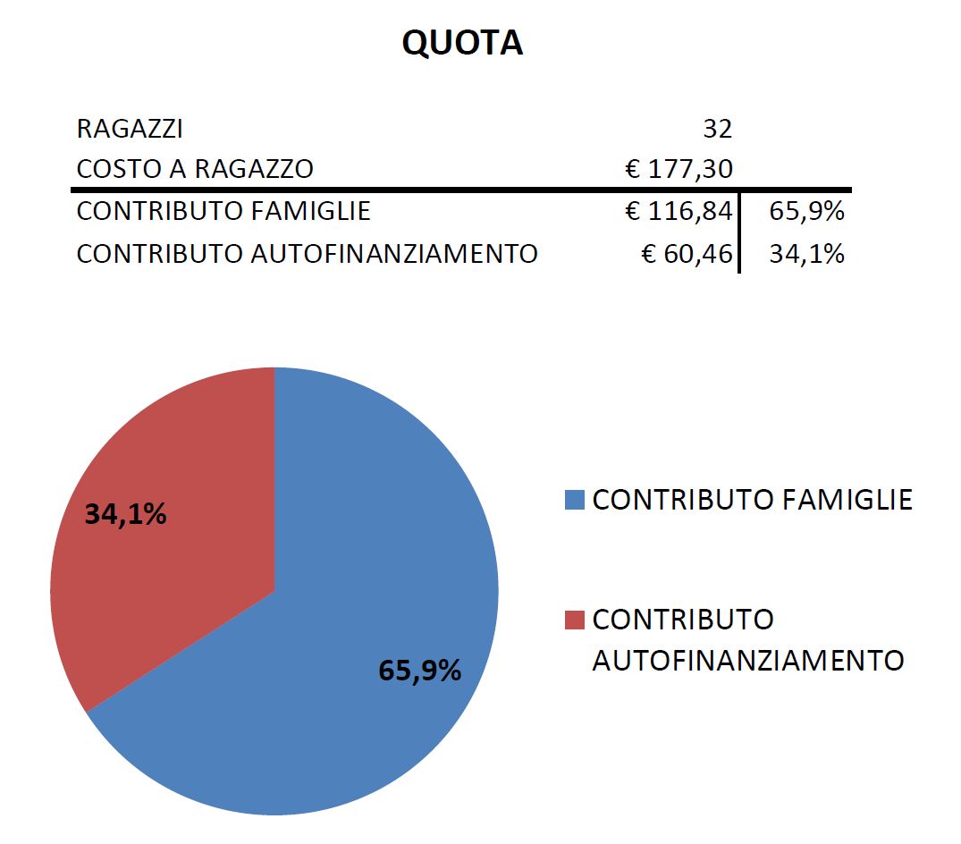 Il costo totale degli 11 giorni di campo estivo per singolo ragazzo è stato di 177,30€ finanziato per due terzi dalle famiglie e un terzo dall’autofinanziamento.